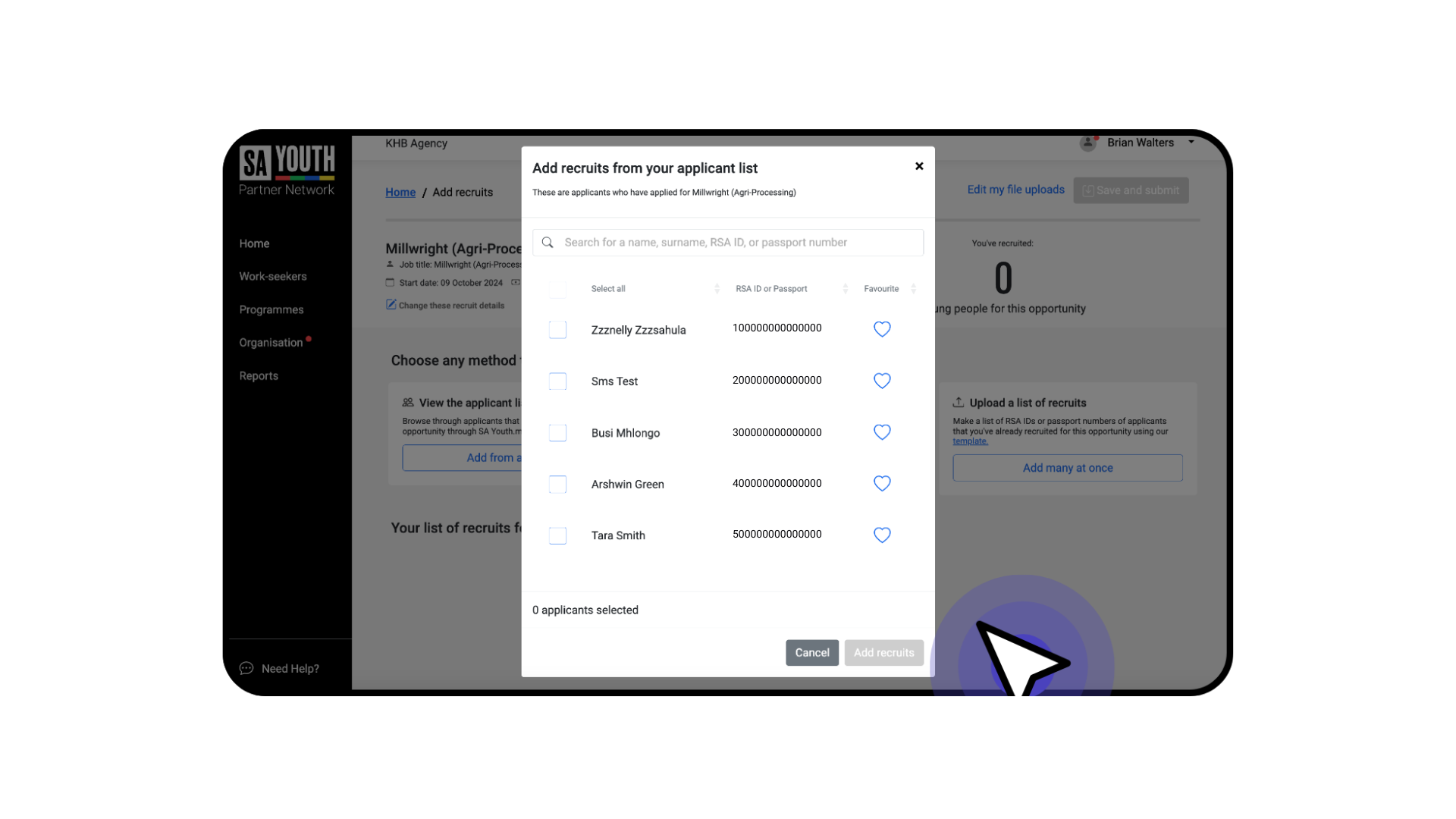 - Method 2. You can search for 10 work-seekers ID numbers at a time, enter an ID or passport number and click 'Add'