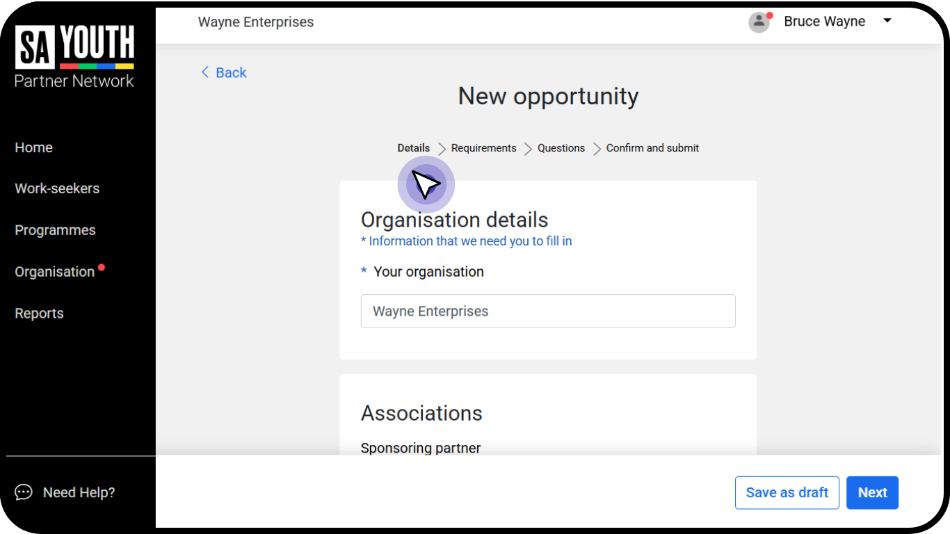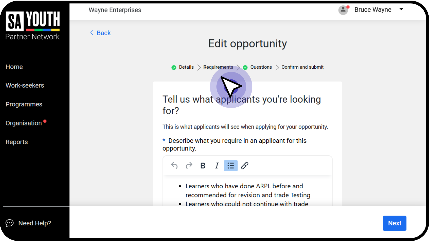 You will need to Populate the Details section to provide work seekers with information about the opportunity such as: