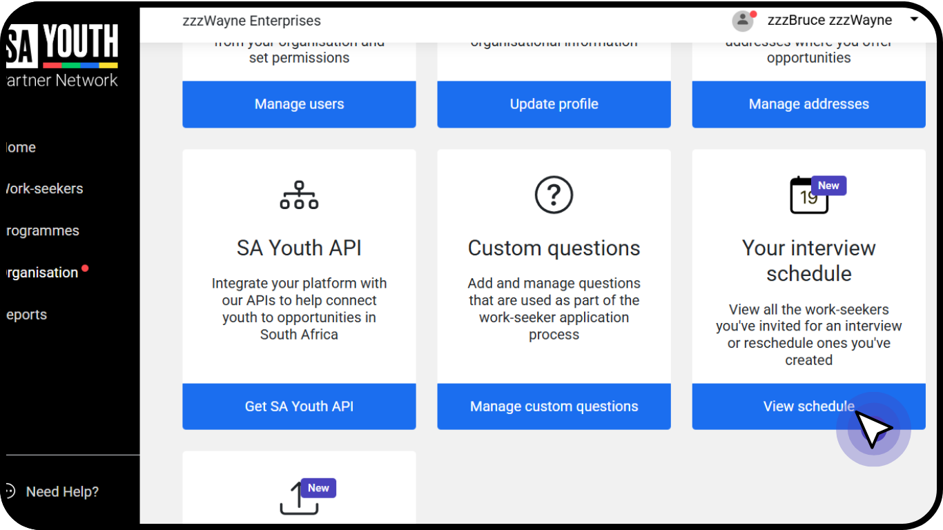 - On your 'Organisation' page, click 'Your interview schedule'.